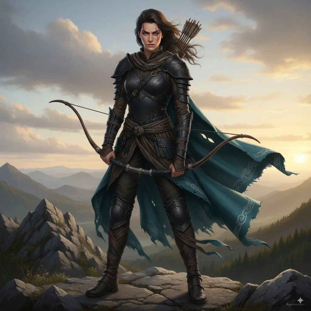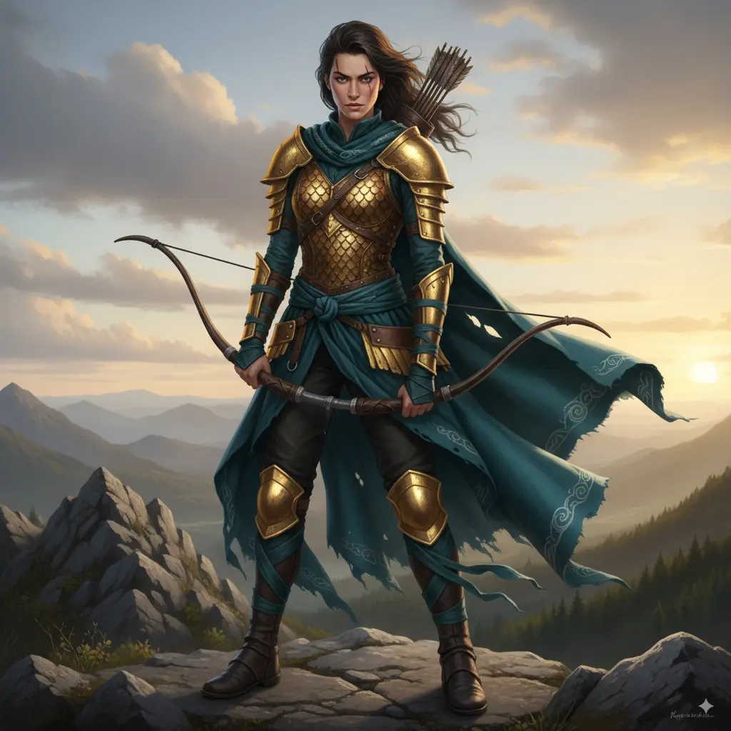 “Create three armored variants for ‘Kael, the wind ranger’: keep facial features (narrow jaw, scar above right eyebrow). Armor A: leather + teal cloth; Armor B: scale + brass; Armor C: stealth matte black. Output full body front, profile, ¾.”