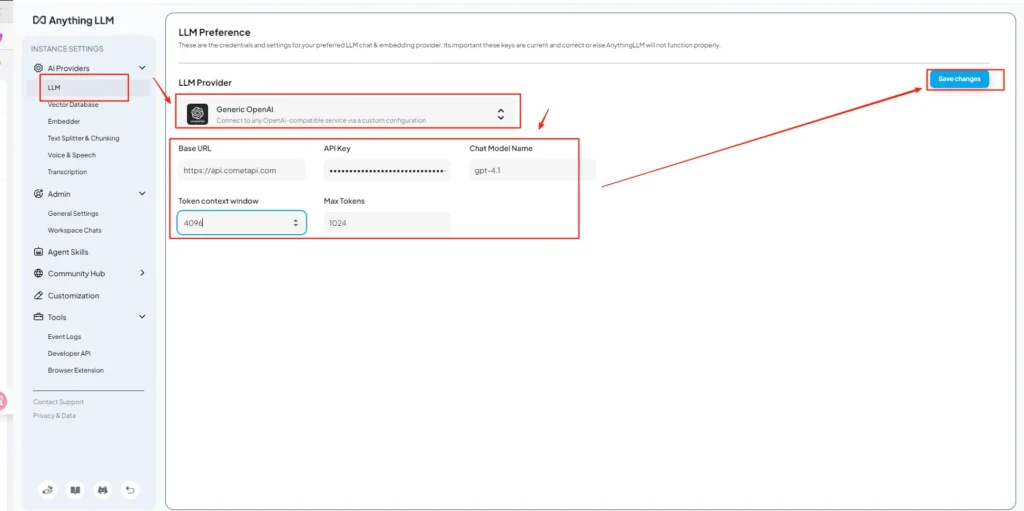 1. Model choice & vendor flexibility: AnythingLLM can use “any OpenAI-compatible” LLM via its Generic OpenAI wrapper. Pointing that wrapper at CometAPI gives immediate access to hundreds of models without changing AnythingLLM’s UI or flows.