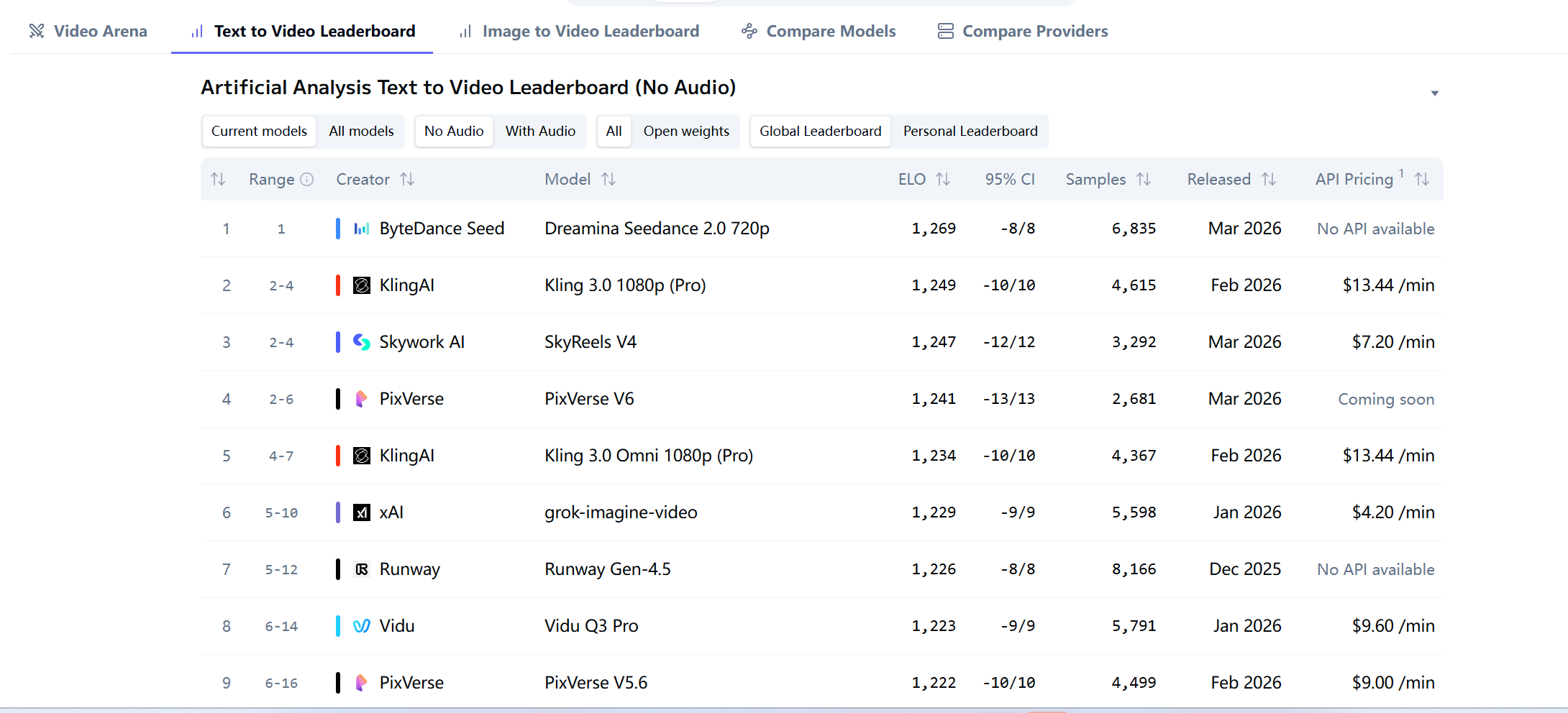 On current Artificial Analysis text-to-video rankings, Seedance 2.0 720p is ahead of both Veo 3.1 and Sora 2 Pro in the no-audio category. That does not settle every quality debate, because the models differ in workflow, safety constraints, and product packaging, but it does show that Seedance 2.0 has moved into the same top tier as the most visible Western offerings.